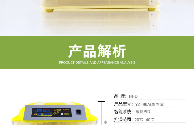 新品HHD/豪华德36枚智能孵化器家用款全自动控温孵化机incubator