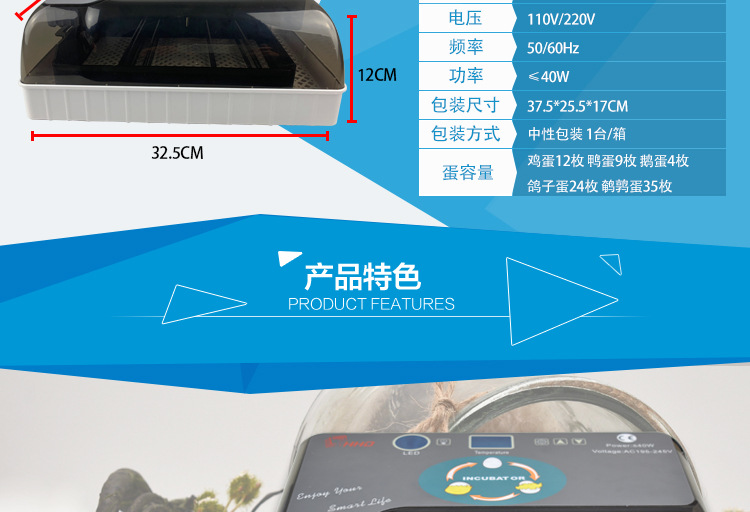 HHD12枚孵化器多功能孵化小鸡鸽子鹦鹉孵蛋器智能设备跨境爆款