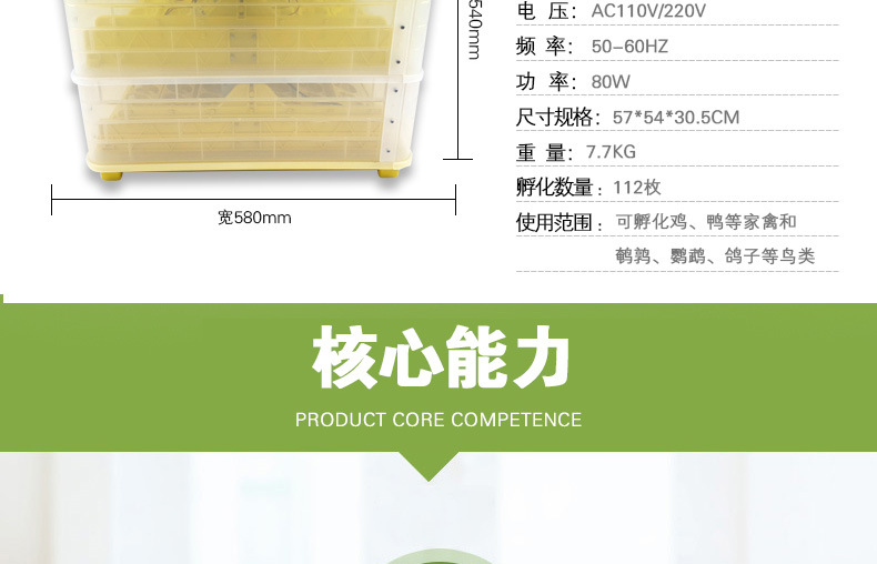 豪华德HHD112枚小型孵化机智能控温全自动孵化家禽蛋类孵化设备