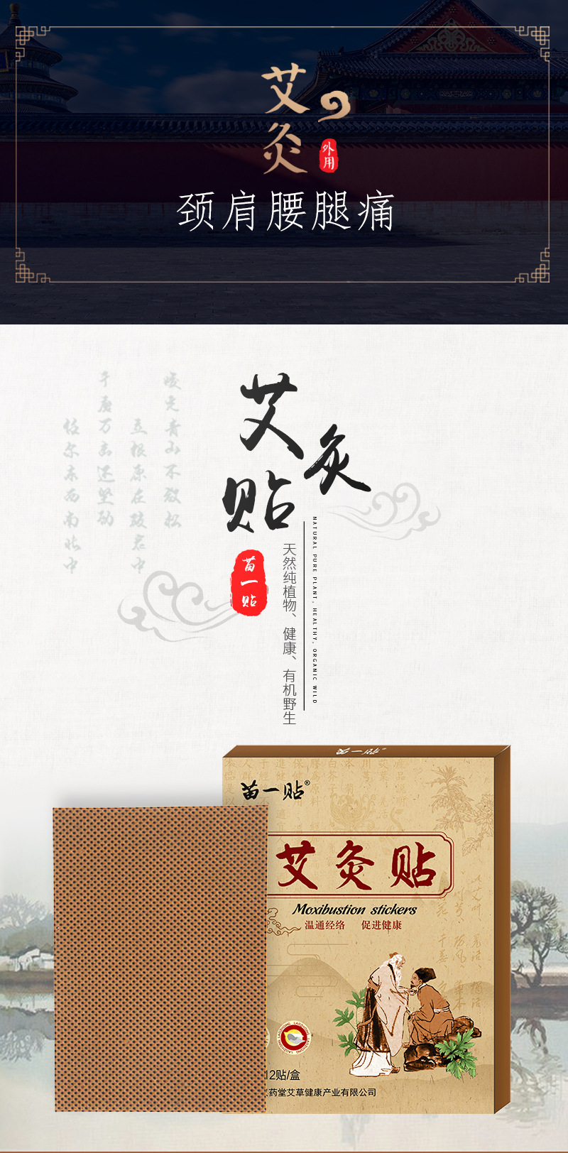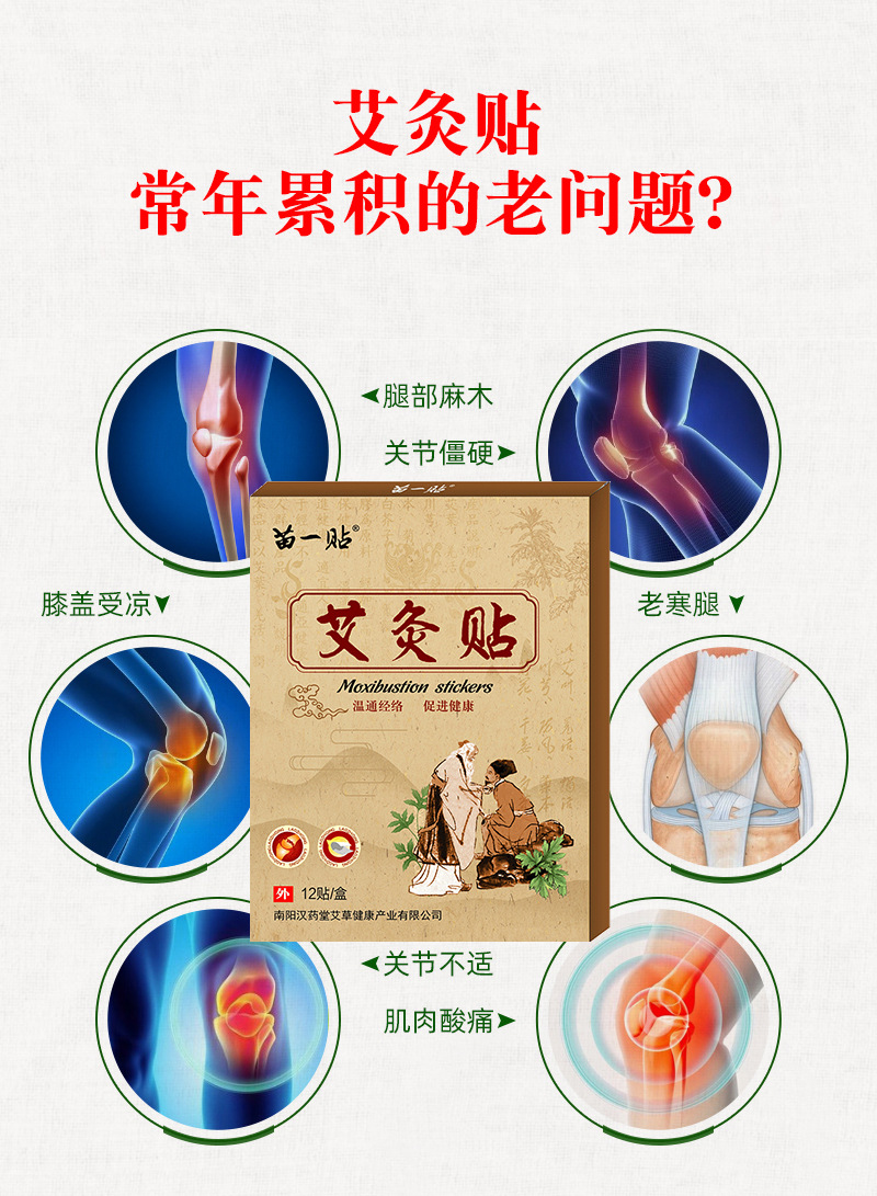 厂家直供关节贴穴位贴发热贴暖贴疼痛膝盖贴艾草艾灸保健贴