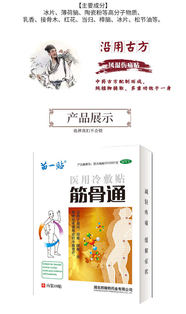 厂家直供缓解颈部腰腿部手膝关节颈椎筋骨肩周疼痛苗一贴医用冷敷