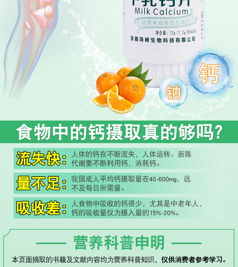 新西兰进口钙源牛乳钙片贴牌 成人儿童钙片中老年营养补充剂代工