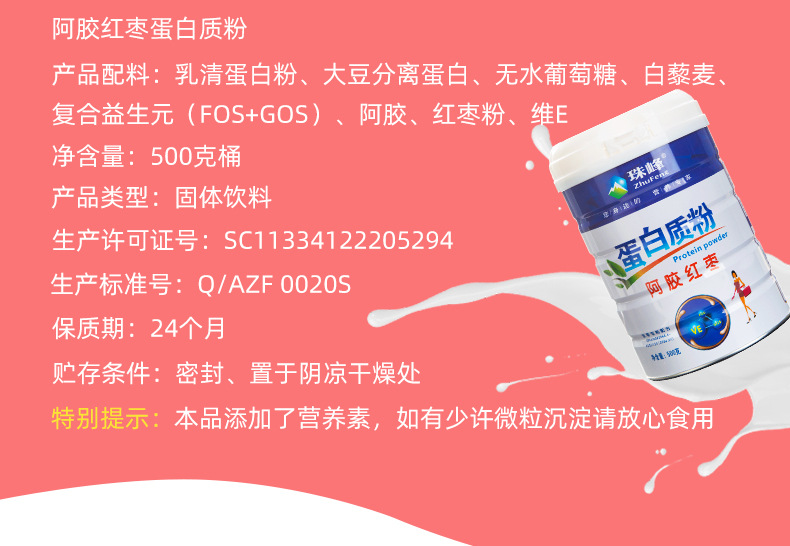 动植物双蛋白500g红枣阿胶乳清蛋白粉代工 大豆分离蛋白质粉贴牌