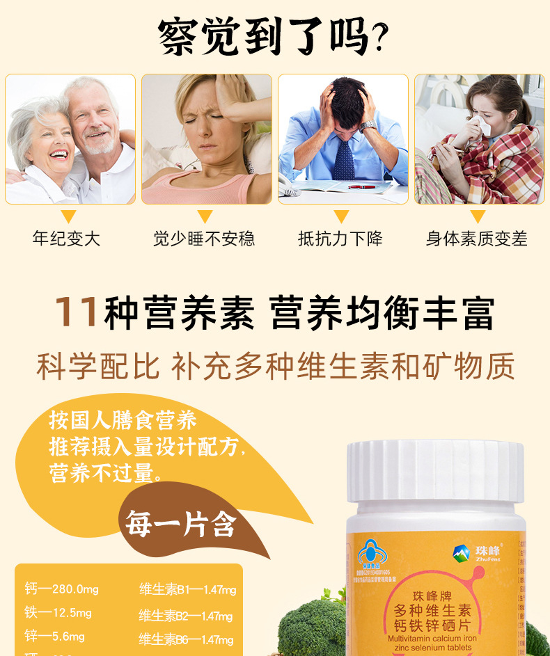 复合维生素中老年 珠峰多种维生素钙铁锌硒片成人保健食品代加工