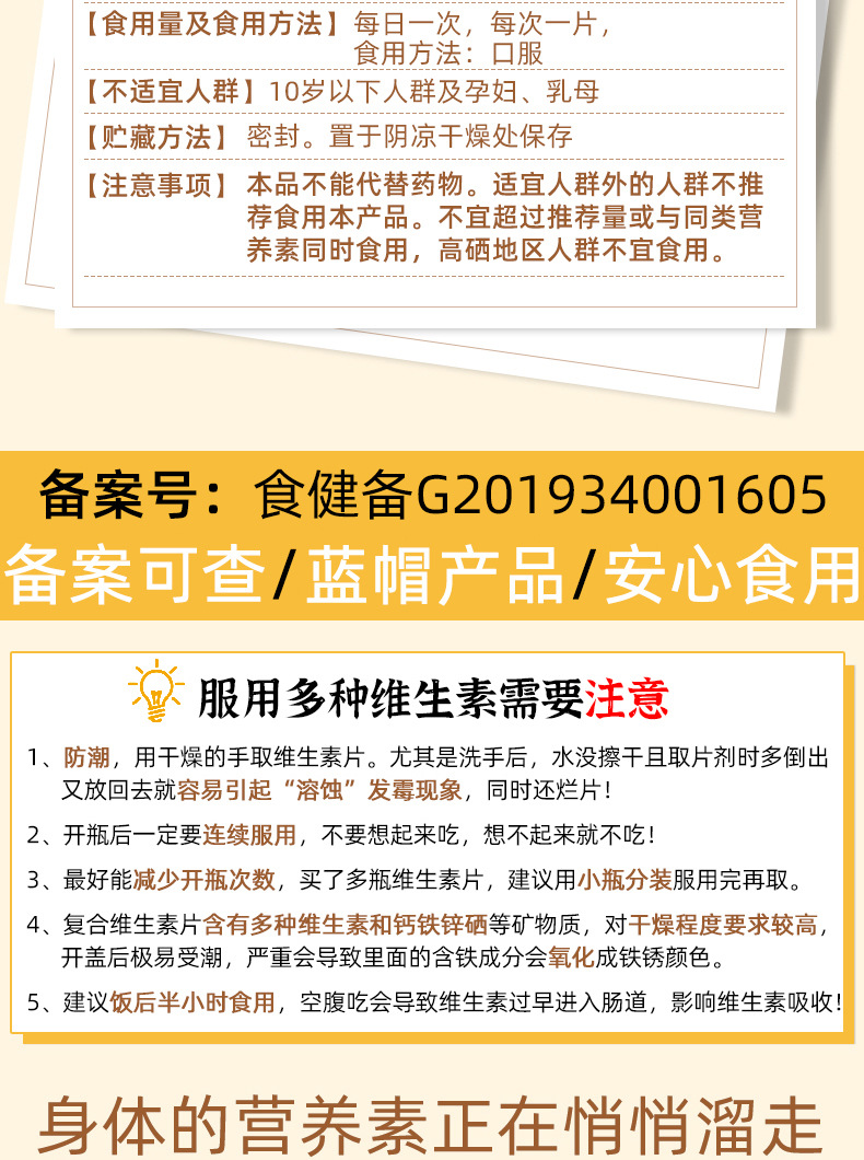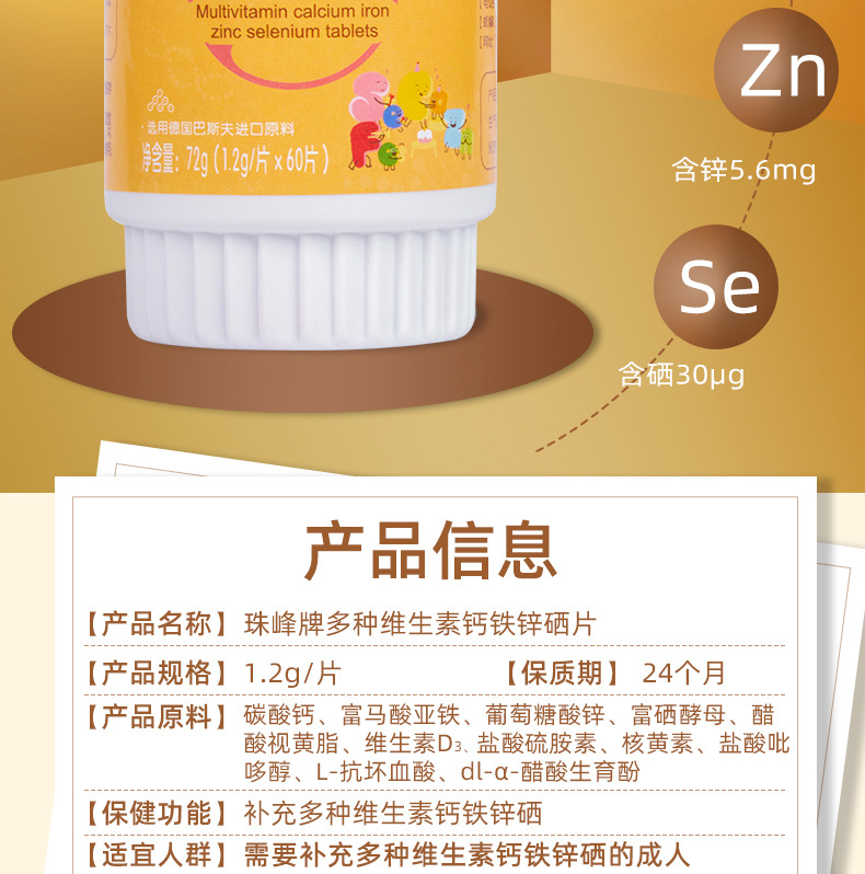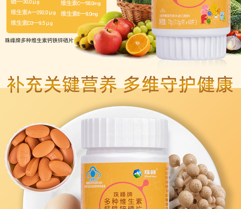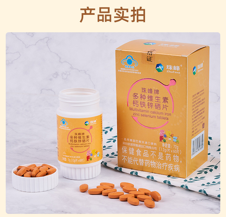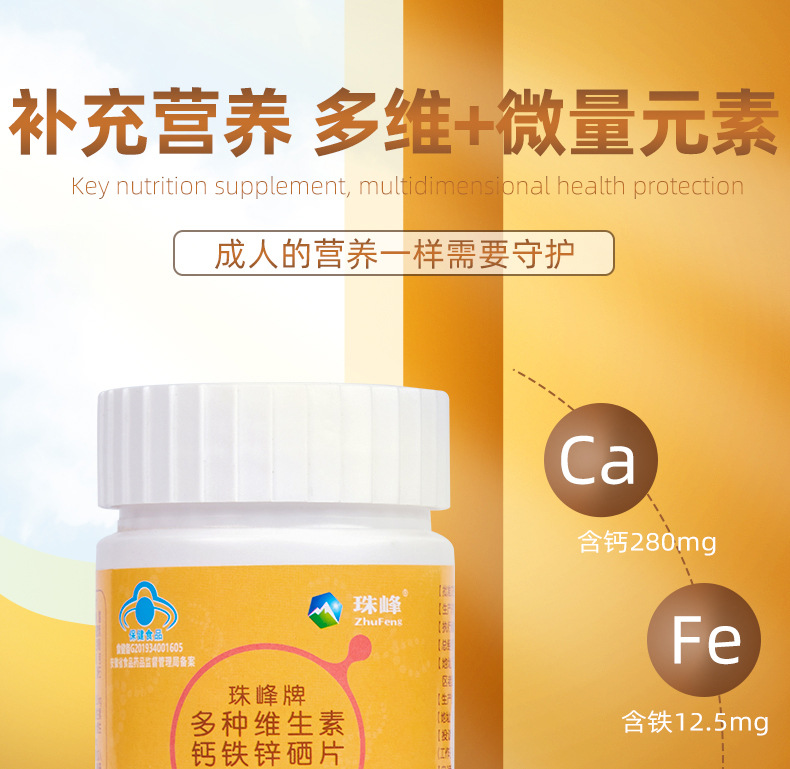 珠峰牌多种维生素钙铁锌硒片 中老年成人多维蓝帽保健食品代加工