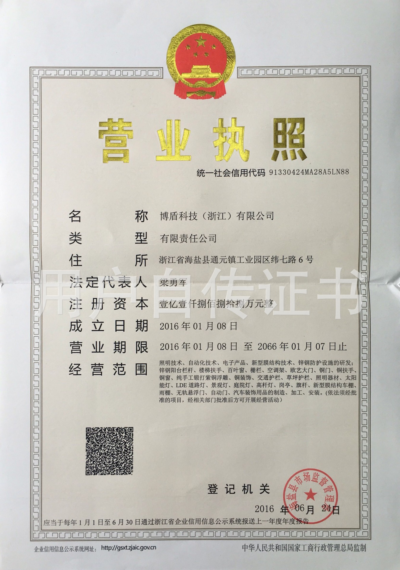 - 登记机关: 嘉兴市市场监督管理局