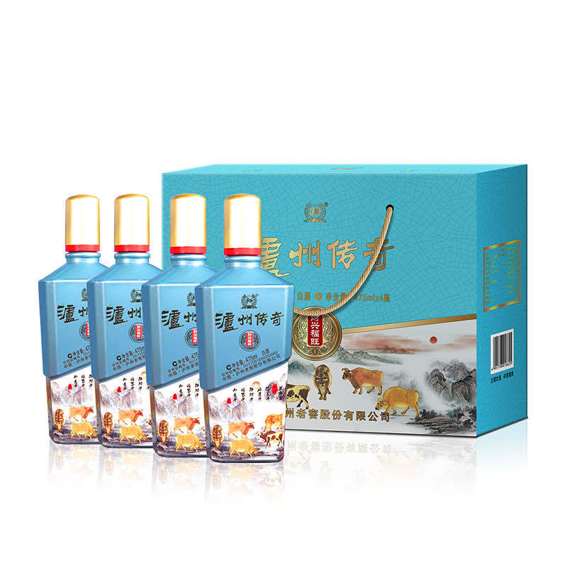 泸州传奇52度浓香型白酒475ml*4瓶礼盒装
