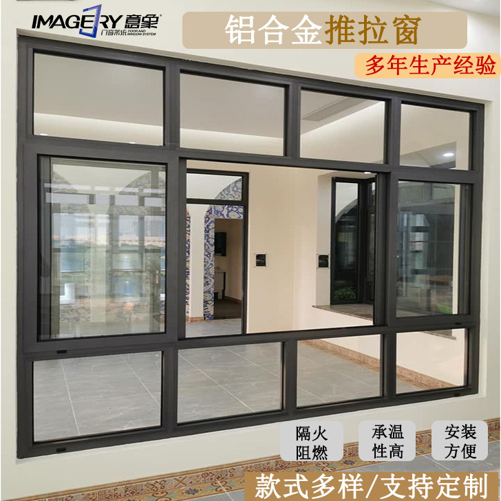 意象工厂定制铝合金非断桥单层钢化玻璃封阳台静音防盗系统推拉窗 ¥330.00